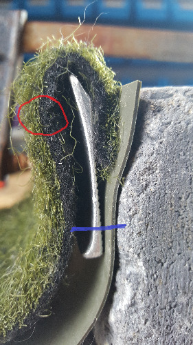 Jetzt suche ich ein Werkzeug mit den ich die Ufermatte durchgehend bis zur Aluschiene anschmelzen kann.