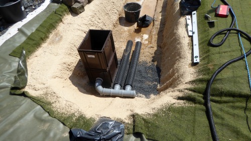 Quer gehen bei mir die Vorfilter nicht in den Filtergraben. Der ist lang und schmal