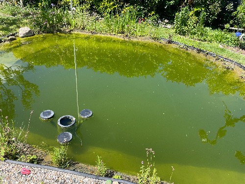 Leider ist das Wasser jetzt wieder grünlich trüb - klar es ist recht warm und die Pflanzen brauchen vielleicht noch ein wenig.
